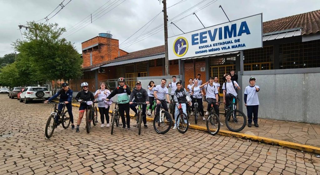 Na tarde desta quarta-feira, dia 29 de outubro, os alunos do 2º e 3º ano do Ensino Médio da Escola EEVIMA participaram do Projeto EEVIMA Bike Tour, uma atividade que uniu esporte, integração e contato com a natureza. O percurso teve início na escola e seguiu até a comunidade Linha 24-Sagrada Família no município de Vila Maria, proporcionando momentos de descontração, trabalho em equipe e superação. Sobre o projeto Coordenado pelo professor Evandro Consaltér, o projeto EEVIMA Bike Tour consiste na realização de passeios ciclísticos guiados, em horários extraclasse (ou turno inverso), sempre saindo da escola, percorrendo as comunidades do interior do município e pontos turísticos. Para cada passeio, haverá preparação prévia do roteiro, com estudo do tempo de descolamento, distância que será percorrida, previsão do tempo para o dia e elaboração textual sobre a história da comunidade ou ponto turístico, curiosidades e principais características do local. O texto, será lido pelos alunos ao chegarem ao destino. Servirá com prática de leitura e escrita e de apropriação de conhecimentos sobre o local. Após esta atividade, os alunos terão algum tempo para descanso e visitação ao local e, em seguida, retornarão ao ponto de saída, a Escola. O passeio sempre será guiado e acompanhado pelos professores organizadores do projeto.