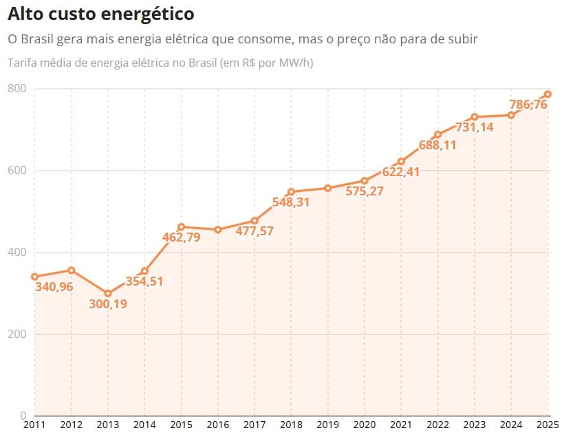Fatores climáticos: Com reservatórios abaixo da média histórica e a possível transição para o El Niño — fenômeno que causa secas severas no Norte e Nordeste —, o sistema elétrico deve acionar usinas termelétricas, que são mais caras. Esse gasto adicional é repassado ao consumidor pelas famosas bandeiras tarifárias.